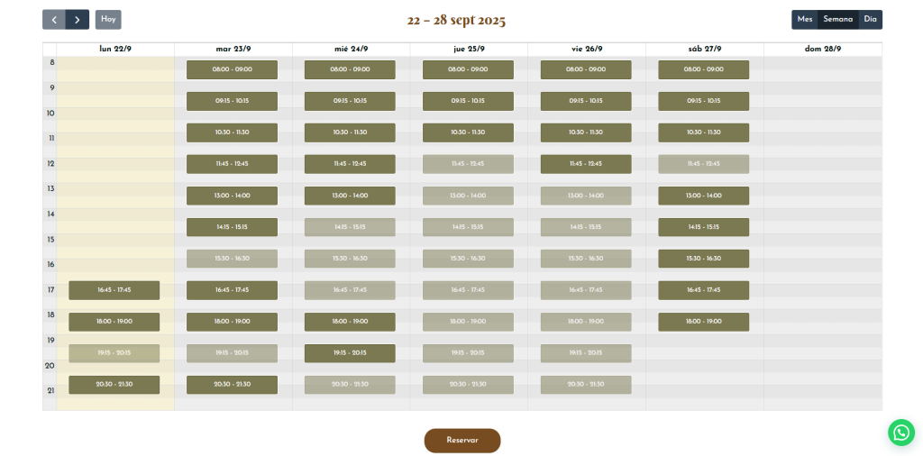 El sitio incluye un sistema completo de reservas en línea, pasarelas de pago integradas y la posibilidad de aplicar métodos de pago condicionales según el servicio o proveedor. Cada usuario cuenta con un panel autoadministrable para gestionar disponibilidad, horarios y contenidos, lo que facilita la operación sin intermediarios.